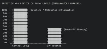 This bar chart illustrates the dramatic reduction (up to 60%) of TNF-α levels following KPV administration in inflamed tissue models.