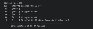This chart outlines the dose-dependent response of biofilm degradation when exposed to LL-37.